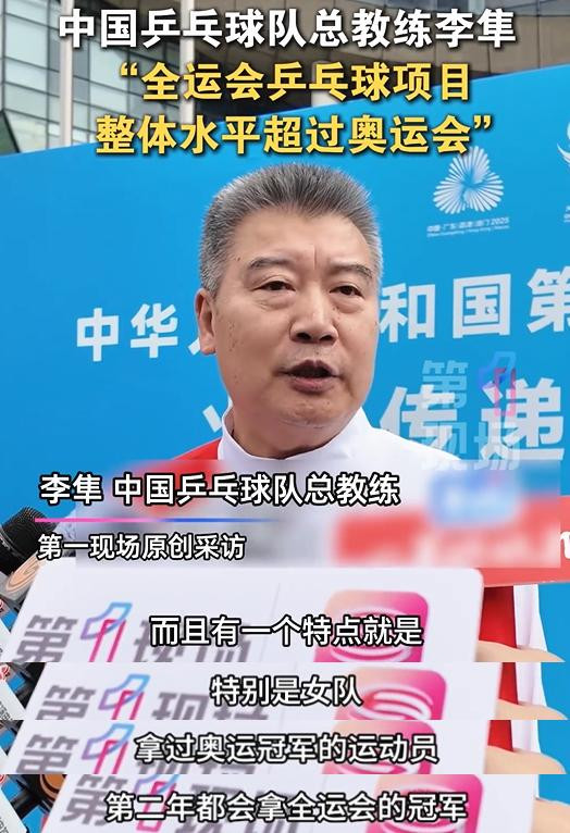 然而在接受采访之际,李隼最受关注的言论,就是“全运会冠军定律”,在李隼看来,全运会乒乓球项目的整体水平实际上超过了奥运会,他特别指出,女队存在一个显著特点:“拿过奥运冠军的运动员,第二年都会拿全运会的冠军。”这一规律并非无的放矢,从历史数据来看,邓亚萍、王楠、张怡宁、李晓霞和丁宁等多位顶尖选手,在奥运登顶后都能在全运会赛场成功卫冕,李隼进一步阐述了他的观察:“全运会的整体水平要超过奥运会,我希望能有更多的年轻乒乓球选手通过这次全运会脱颖而出。”这一判断源于中国乒乓球队独有的“内卷生态”,全运会汇聚了所有国乒主力、奥运冠军与世界冠军,省队针对性备战让每一场对决都呈现出“地狱级”强度