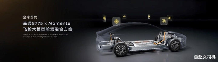 基于合资车企首个中央超算SOA电子电气架构,以及高通骁龙车规级8775芯片,东风日产全球首发高通8775×Momenta飞轮大模型舱驾融合方案,在N6上首发搭载。