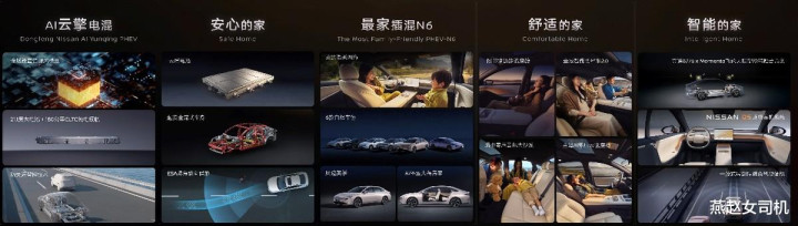 在技术及产品配置方面,N6首搭AI云擎电混系统,配备21.1度大电池,实现180公里纯电长续航;车身采用超安全笼式结构与云盾电池,搭载行业首创的防失速智控技术;智能上,全球首发高通8775×Momenta飞轮大模型舱驾融合方案,并搭载行业第一梯队的 NISSAN OS 超级车机系统;舒适性上,配备前排AI零压云毯座椅、后排全新零压云毯大沙发,全域智能防晕车技术2.0全面进化。