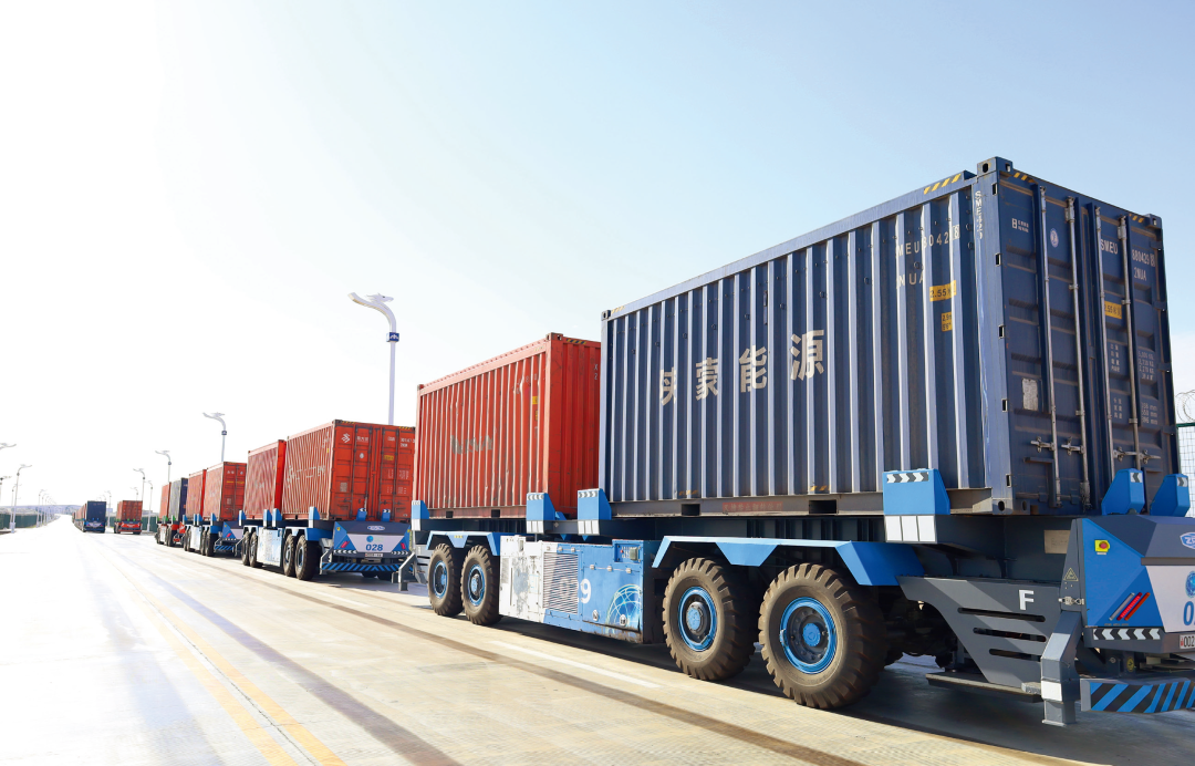 甘其毛都口岸AGV(自动导引运输车)专用通道运行场景。