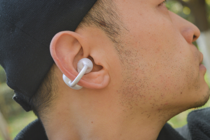实际佩戴体验,夹耳式耳机通常设计得非常轻巧,适合运动时使用。耳挂式设计能够很好地固定在耳朵上,不容易脱落,夹耳式耳机通过挂在耳朵上,不需要耳塞插入耳道,也不像头戴式耳机那样压在头顶或耳朵上,减少了长时间佩戴的压力。尤其是对于不喜欢入耳式耳机的人群,这种设计会更为舒适。不像入耳式耳机需要深入耳道,夹耳式耳机仅仅挂在耳廓上,对于不喜欢耳朵内有异物感的人,能够提供更自然的体验