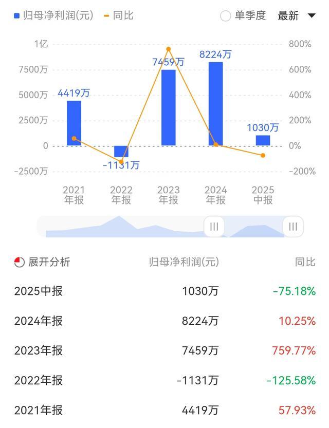 近年来,汇元科技的业绩波动幅度较大。同花顺数据显示,2021年至2024年,汇元科技分别实现营收1.32亿元、1.21亿元、2.48亿元、2.24亿元,同期归母净利润分别为4419万元、-1131万元、7459万元、8224万元。