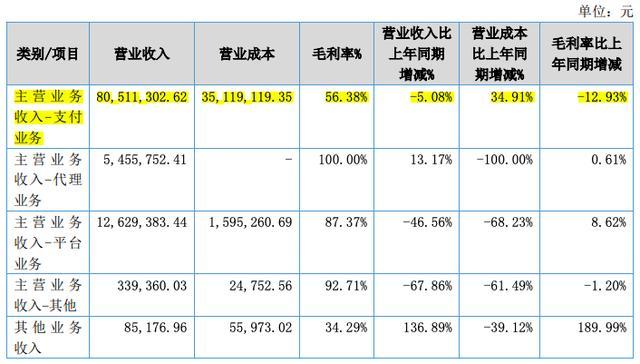 支付主业毛利率持续下滑